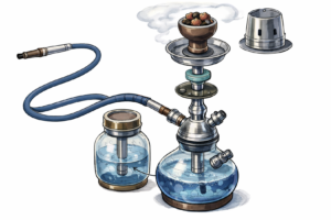 最も大きな違いは、燃焼方法です。紙巻きタバコは葉を直接燃やして煙を発生させますが、シーシャはフレーバーを炭の熱で加熱し、蒸気を発生させます。燃やすのではなく「蒸す」イメージに近いため、煙の質が大きく異なります。